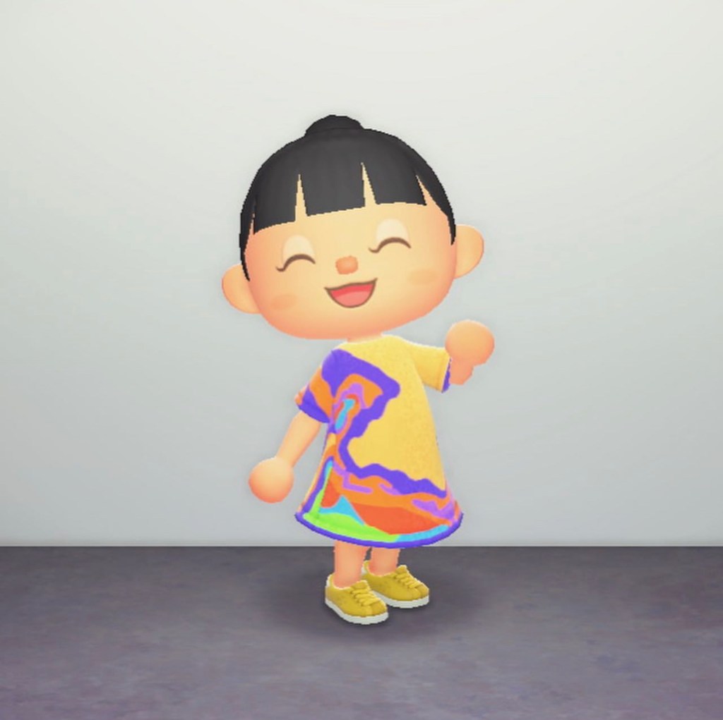 There is a feature on the game, once you get to a certain point, where you can actually share your designs with other people that have the game as well. There is a creator code which many designers use. What was surprising to me was that the creators of the custom re-creations are excited to share their designs with the rest of the Animal Crossing gamer community. Unlike the real fashion world, taking ideas and designs are encouraged!